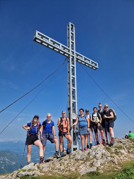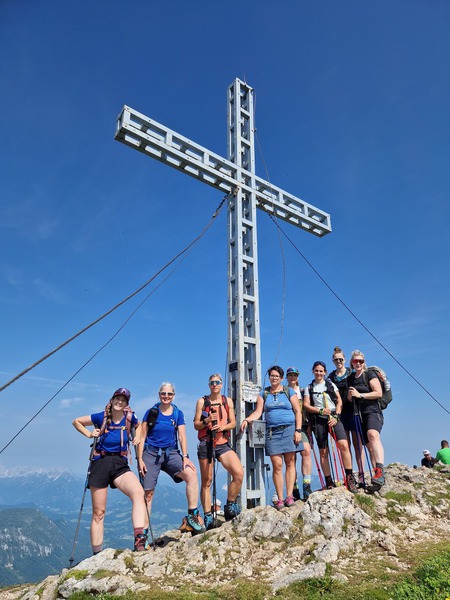 ausgesetzt und seilversichert, war aber für alle Teilnehmerinnen problemlos zu begehen und nach knapp 2,5 Stunden waren wir dann am Gipfel des Großen Pyhrgas (mit 2244 m der höchste Gipfel der Haller