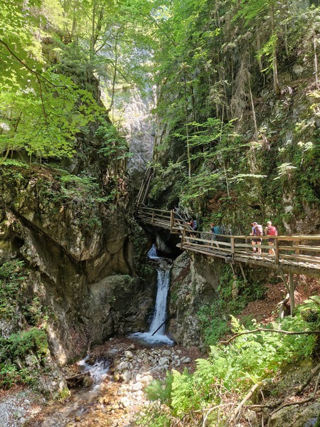 Vom Parkplatz 2/Grünau ging es los durch die wunderschöne Dr. Vogelsang Klamm (6,30 Euro Eintritt/Person). Da es sehr sonnig und heiß war, genossen wir den Schatten und die angenehme Brise in der Klamm. Vom Ende der Klamm ging es dann weiter bis zur Bosruckhütte und dann über den Wanderweg zum Rohrauerhaus.